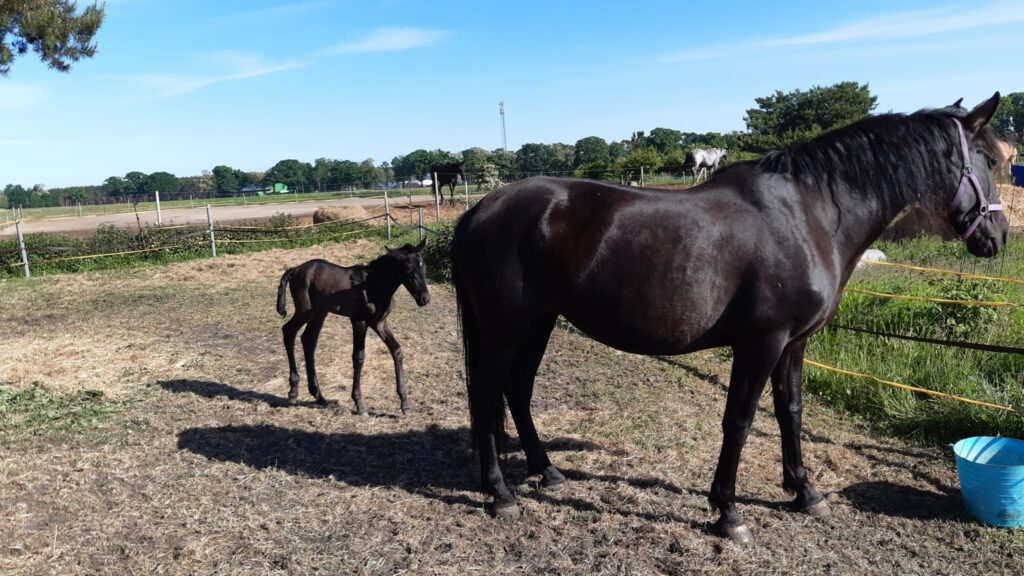 Als Oster-Sonntags-Kind kam ich im April 2017 auf diese Welt. Mein Name ist Barney und ich bin der Sohn von Vitani und Feivel. Vom ganzen Osternachwuchs des Jahrgangs bin ich mittlerweile der Größte und bald gehts los mit der Reitausbildung.
